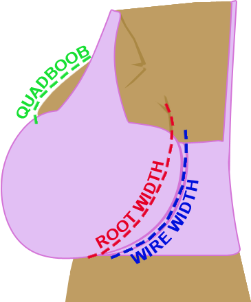 Quad-boob occurs when breasts spill over the cups either on the tops or out the sides (like into the armpit area), giving an impression of four breasts.[7] If this occurs, in general, the cup is too small. In general, go up a cup size.